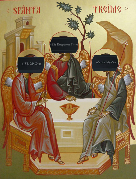 Talentele Sfintei Treimi: gold, xp și reduced respawn cooldown. Deși cel din urmă nu a avut viață lungă, circa 5 luni, până când a fost scos, pentru că era prea broken (undying 0 cd death time, la tine mă uit), celelalte două au fost asset-uri cruciale pentru suporți o perioadă lungă de timp (xp-ul și gold-ul au fost scoși abia dupa 3 ani!).