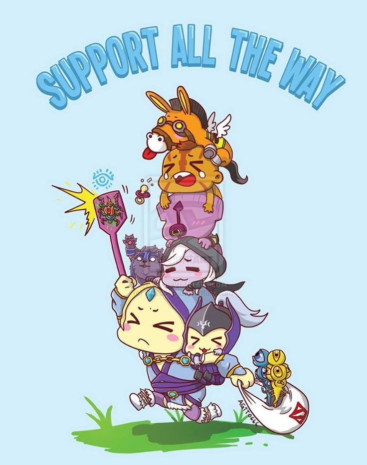 Suporții trebuiau să se lupte cu acești mamuți de core aproape cu inventarele goale, bazându-se aproape exclusiv pe o viziune și pozițioanare superioară. Situația era aproape deplorabilă când adversarii aveau în teacă sabia lui Lothar sau aveau abilități de invizibilitate. (În astfel de cazuri, prin 2015-2017 mă găseai în min. 60 cu arcane boots, stick, juma de force staff și 1000 de sentry cumpărate).