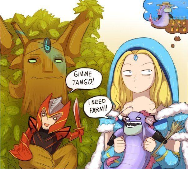 La început, în primii ani de dota, în era “battlenet“, “garena“, “robattle“, “gplay“, etc, eroii sau jucătorii se comportau precum triburile din paleolitic. Mici societăți proto-comuniste, echipele de dota de atunci nu aveau o ierarhie bine definită bazată pe roluri cu prioritate la farm, ca în ziua de azi, în schimb acestea împărțeau resursele mai uniform sau altruistic, pe deviza “ia tu creep-ul ăla, că-l iau eu pe celălalt” sau “un val farmez io, un val farmezi tu”. Desigur că acest fenomen îl întâlnim și patch-urile moderne, unde suporții momesc corii de pe linii în junglă cu stack-uri ca aceștia să prindă câteva valuri vitale de solo xp pentru acel prețios level 6 sau cum să uităm de arhicunoscutul pull, acesta din urmă având ca scop primar să refacă equilibrium-ul sau/și să anuleze un val de creepi pentru adversari, scopul secundar fiind puțin solo xp și gold pentru suport.